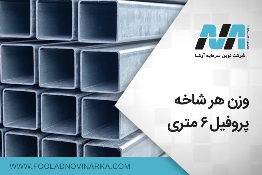 وزن هر شاخه پروفیل 6 متری با توجه به طول شاخه، سایز مقطع و ضخامت آن محاسبه میشود. ابتدا باید نوع پروفیل مشخص شود و سپس وزن هر متر پروفیل با استفاده از جداول استاندارد به دست آید.